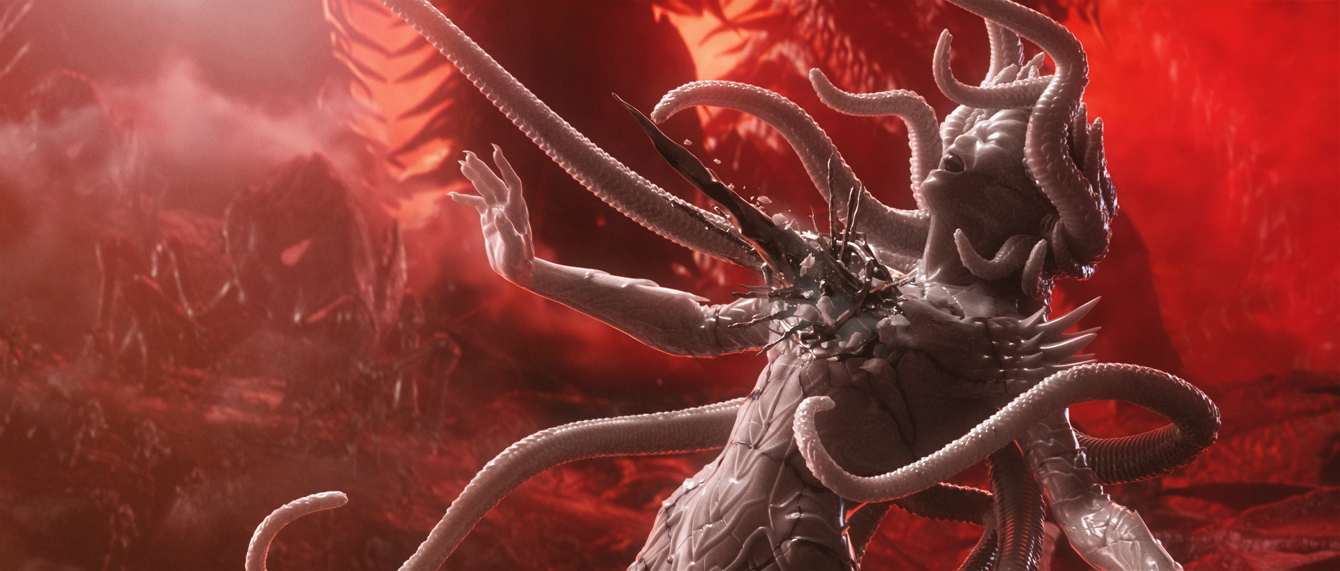 Wizard of the coast entrusted us with the production of this new trailer for their sci-fi / horror expansion phyrexia. This trailer introduces the second act of a trilogy and wanted to rely on a motion design realization to represent the Phyrexian universe.