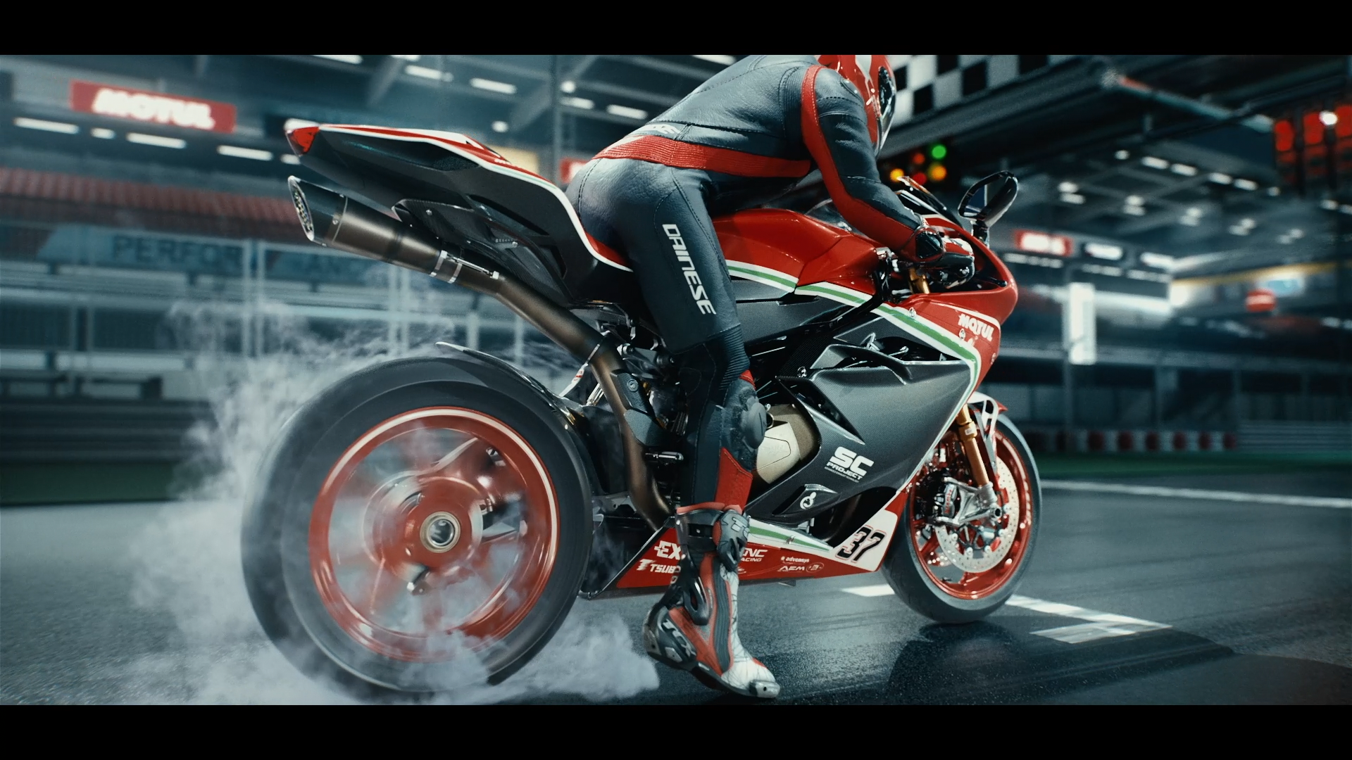 From the starting grid to the finish line, we want to take the spectator into the heart of a circular sequence-shot trailer, alternating between mechanical shot and the freeze time action of a motorbike in full race.